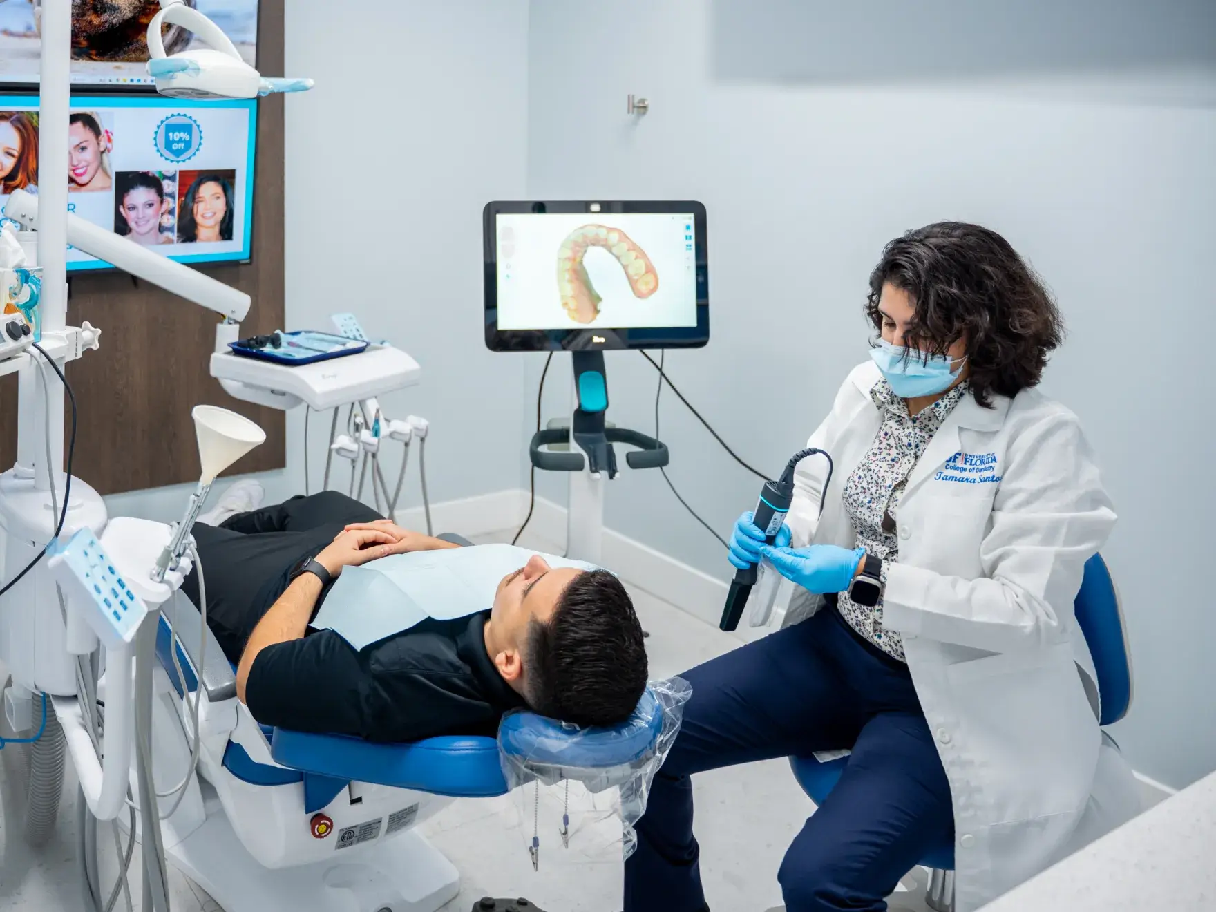 You'll find us easily near Bayfront Park with FREE Validated parking waiting for you. Our team will greet you warmly and get you settled with a complimentary beverage. If you're feeling anxious, let us know—we have cozy blankets, Netflix, and calming music to help you relax.